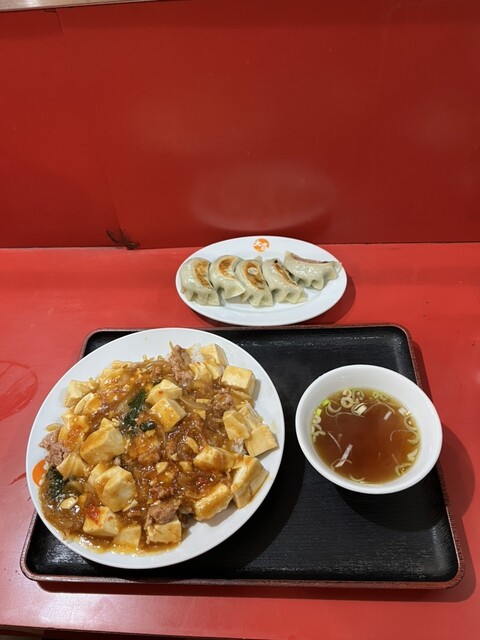 とりあえず友人2人には定番のチャーハンを勧め、私は昨日チャーハン大盛を食したので今日は麻婆丼大盛でいきました!!