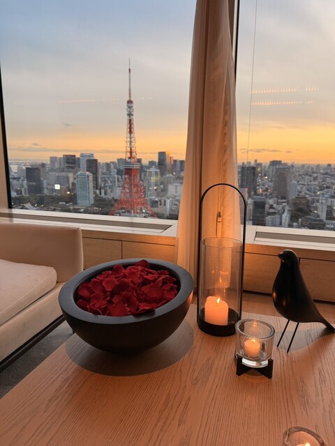 ちょうど陽が落ちる頃に利用したら、光る前と光った後の東京タワーが