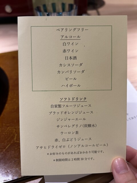 お料理に合わせてペアリングも楽しむことが出来ます。飲むのが好きな人はもちろん幸せだと思いますし、飲めない人でも、美味しいノンアルドリンクを用意してくださっているので楽しめます☺️