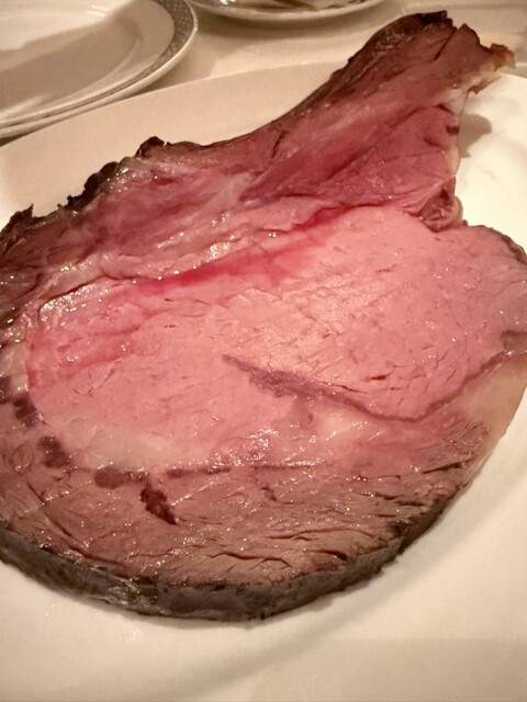 肉が好きで、普段からあちこち食べ歩いている身として、ここは一度は通るべき場所だと思う。ロウリーカットのプライムリブは、厚みと火入れのバランスが見事で、ナイフを入れた瞬間に肉の繊維が静かにほどける。噛むほどに広がる旨味は重たすぎず、脂の甘さも上品。