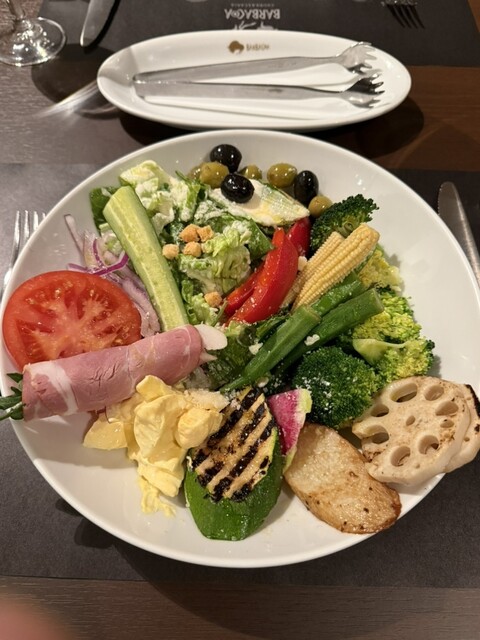 なんとか1人で食べ切れたブッフェサラダ。ドレッシングはオリーブオイルと塩とチーズのみがおすすめ