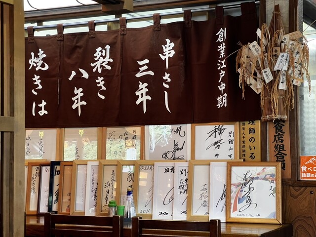 入り口入ってすぐ右手のテーブル3個の真ん中の席から。のれんの右、スモークガラスの向こうに大将が焼いてらっしゃる。お身体に気をつけてください。