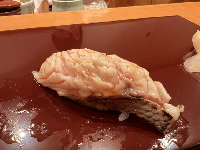 烏賊から始まり、佐渡産のとびきりのネタが続く。ネタに隠し包丁が細かく入っていてシャリもほろほろで口の中に入れるとネタと一体となって、溶ける。お酒もドンピシャで、まさに夢のような時間だった。