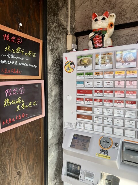 日曜日、開店11:00に着くと10人ほどの行列。第一ターンに入れました。本日も限定ラーメン2種です。しかも和え玉も2種です。ルールとして『ラーメン一杯につき和え玉ひとつ』なので、限定和え玉2種とも試したかった私のオーダーはこうなります。