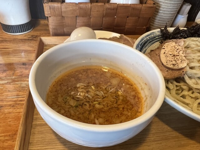 Xで見て来ました。「豚出汁と背脂のつけそば」。
