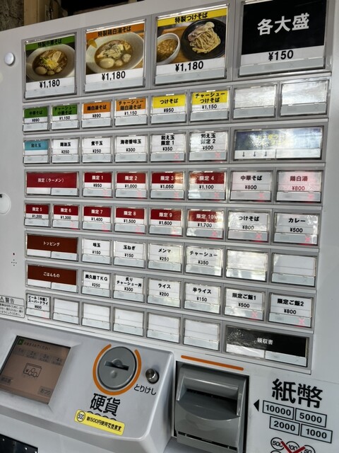 デフォルトのつけ麺を食べようとやって来たのですが、販売機の横にボードで限定麺が提示されていまして。