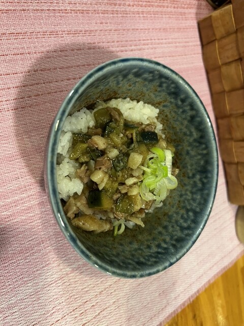 ②限定『揚げナスと背脂のご飯』です。