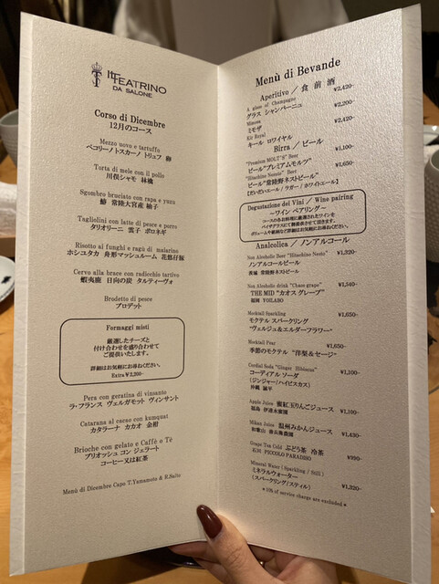 食べ終わる頃にシェフが直々に挨拶してくださり、手書きのメニューもいただきました。
