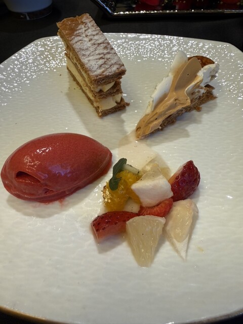 それと驚いたのが、デザートをメニューから選択したあとに、デザートワゴンも2つ出てくるので、スイーツに関しては、もはやスイパラのような満腹感に浸りました。