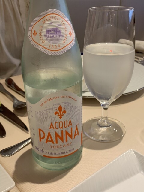 そんな不安をよそに、オーナー店主の奥様だろうか、通常ならばソムリエとしてその素養を如何なく発揮されるであろう女性コンシェルジュが、頼んだペリエを上品な手つきで注いでくれる。こんなことされた事ないので感動も一入。