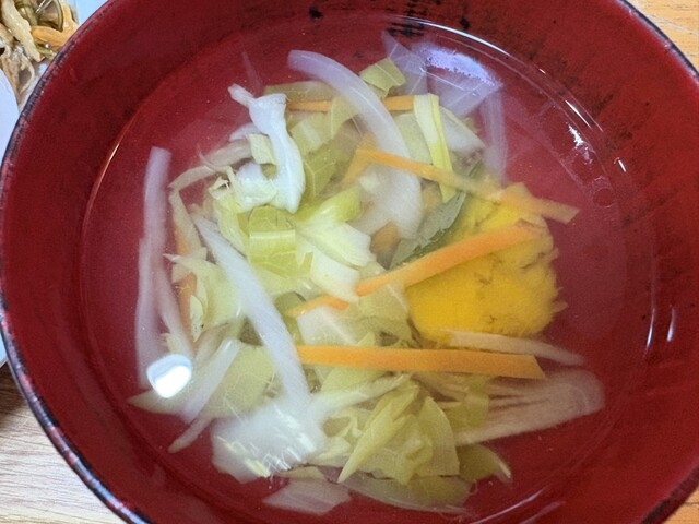 今日のスープは、やはり昆布と椎茸出汁には変わりないが、デトックス効能が最高になる具の組み合わせらしい。
