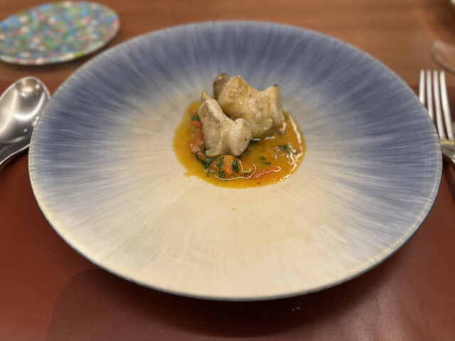 ◉河豚バスク唐辛子(骨付き、丸一日スパイスらに漬け込んだ物で、コース中盤のアクセント的メリハリにドンズバ(^^))。