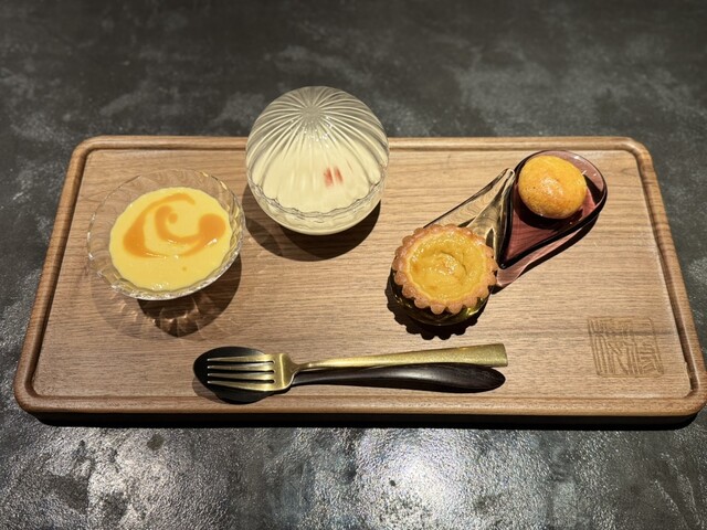 ◉デザート(杏仁豆腐とマンゴーミルク、安納芋のタルト、クッキー)