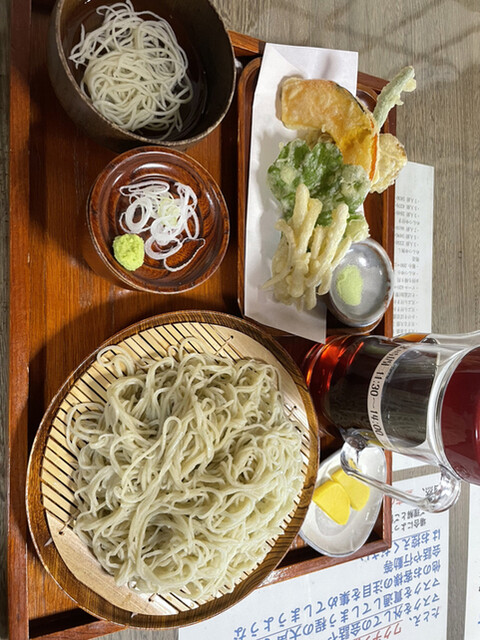 新蕎麦の打ち立てで美味しいです、あんまりツルツルしないんですね。