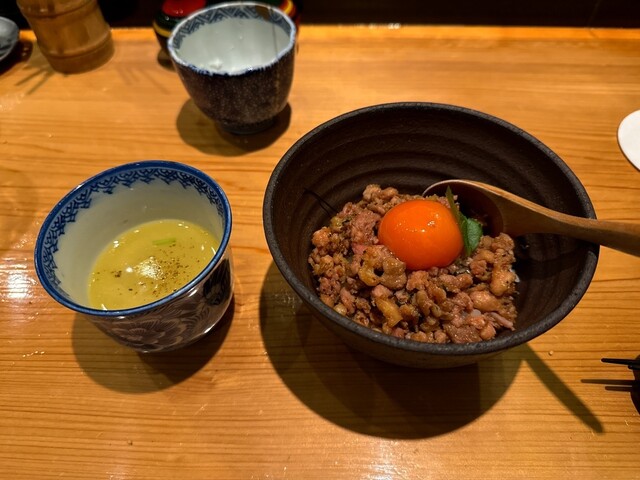 水濠赤鶏(千葉生産)を使用している。厚揚げ豆腐や最後の鶏そぼろまで美味い。ハツモトはお代わりまでした。鳥肉、タレの味付け、焼き方まで完璧。
