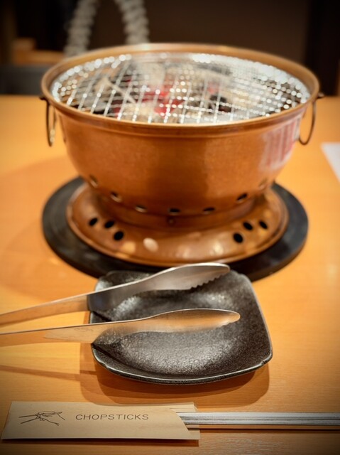 しかもテーブルで炭火七輪で焼くスタイルっスよん。