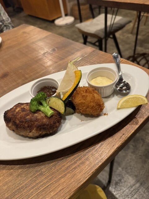メインのハンバーグは柔らかめですごく美味しかったです!!クリームコロッケは後5個くらい食べたいくらい美味しかった〜