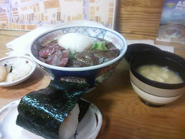 あかうし丼は、肉厚でジューシーなお肉とタレがよくあい、ご飯が進む味。