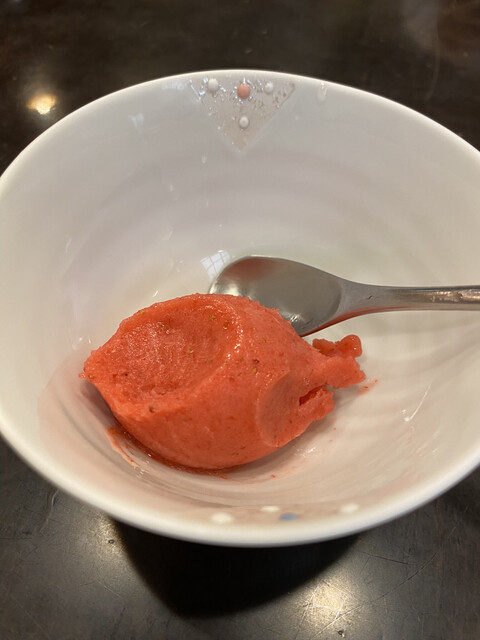 家内は、12貫食べてもう充分な様子だったが、好物の金華サバと、ネギトロ巻を頼んで完全燃焼。あー美味しかった...と席を立つと、「お待ち下さい、最後にデザートをお出ししますから。」と、シャーベットを唸りながら味わった。店は満席だったが、接客もとても心地よく、次は是非塩竈の本店にお邪魔したいという思いと、何とか東京にも出店して欲しいという、二つの思いを同時に胸に抱いて店を後にした。余は満足じゃ。ご馳走様でした。