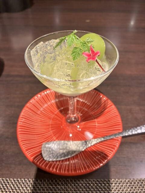 シャインマスカットのゼリー、枝豆のムースのカクテル
