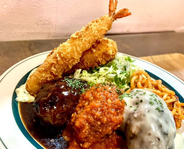 ・洋食オムライスプレート(カニクリームコロッケ&エビフライ ハンバーグ ナポリタン)