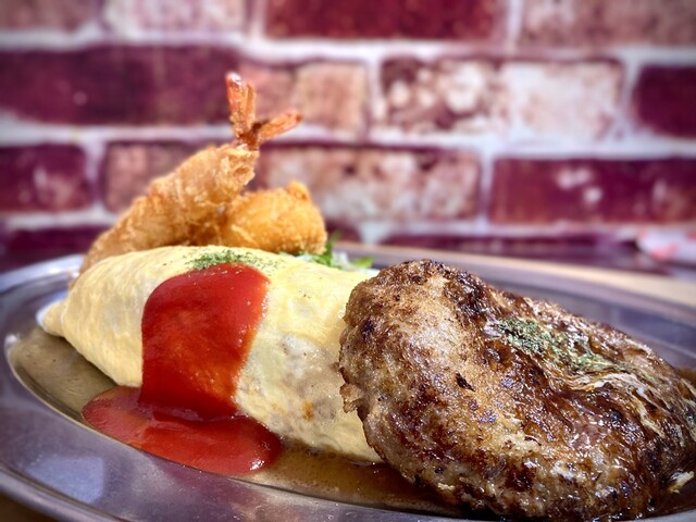 各々の具材が香ばしく、巻いている薄焼き卵の、やわとろ志向ではない仕上がりと手抜かりのないトマトソース。