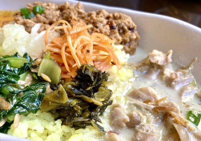 生薬スパイスを用いながらも親しみやすい魯肉飯。大人気であることに納得。後半は三種をまぜても。