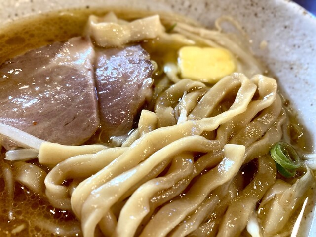 ・味噌ラーメン 小麦味しっかりしている滑らかな太麺もすごいし、すぐ溶けてなくなりはしないバターの確かさもすごい。