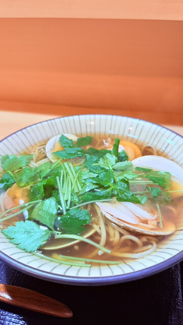 炙った銀杏と蕎麦湯に始まり、蓮根饅頭の屑餡掛け、鴨焼肉、白味味噌かけ蕎麦、しめのザル(福井)でデザートにさっぱりゆずシャーベット、満腹でした!!
