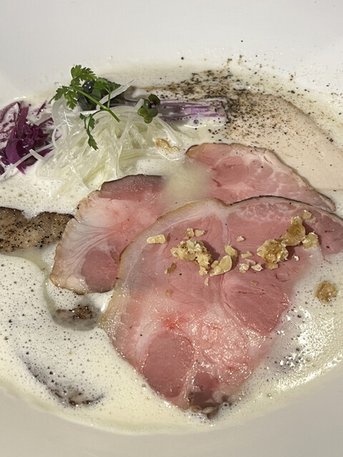 こんな 真っ白の白湯は初めて!! クルミがいいアクセントになってます。