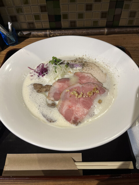白湯は 豚骨にクラムチャウダーを足したような まろやかさ。