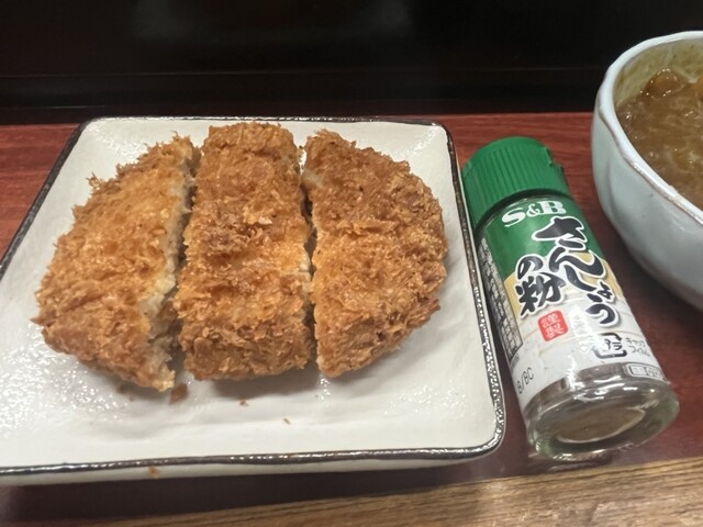 常連さんが頼んでいるのに 聞き耳を立て、、、。 ミンチカツカレーをオーダー! 無理言って カレーは別皿に入れてもらいました。苦笑
