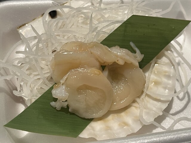 ホタテはお刺身で頂きましたが ヒモの部分のコリコリ食感が たまらない!!