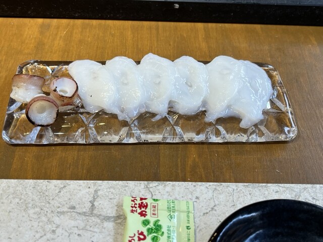 タコの刺身。 吸盤は炙ってくれています。