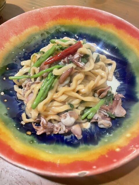 シイラの塩干をアンチョビ感覚で頂くピザは、私達が知っているピザではなく、生地はパリパリでその上にシイラの塩干しが乗っていて新食感なピザで他では中々味わえない一品でした。