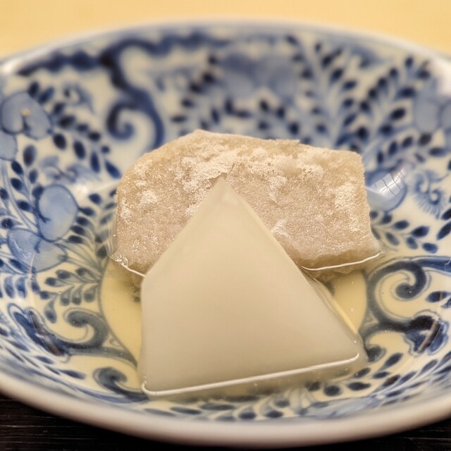 ・胡麻豆腐と白味噌ふきのとうの天ぷら汁