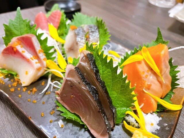 生牡蠣、エビと始まり、お刺身もぷりぷりで美味しい!小魚の姿揚げも揚げたてサクサクで美味しい!!