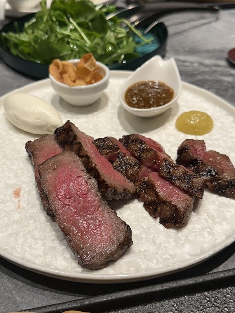 ステーキのサーロインは脂身が多いイメージでしたが、わっ。ここは、脂がくどくない。しかも、ふわふわでやわらかい。一切れは分厚いのに、ナイフを使わずに歯で簡単に噛み切れます。