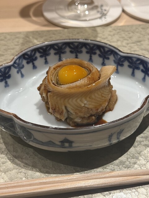穴子と卵のお料理。ふわふわの穴子がたまりません。