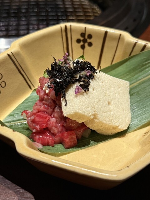 大分県産卵黄を使った珍しい板状のユッケ。