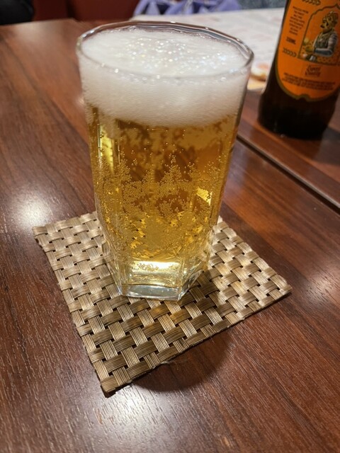 まぜまぜカレーのラッシーとインドビールマハラジャと相方はあいがけカレーのキーマ(チキン)とマスタードフィッシュを注文。