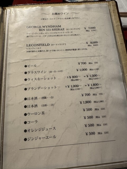 セットにはドリンクが1杯ついているので、ワインやビールなどを選びます。