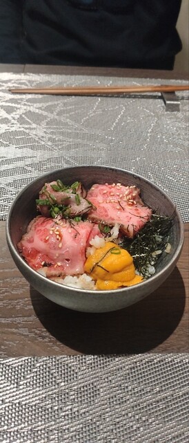 加藤牛肉店と小川のウニのコラボ店です。