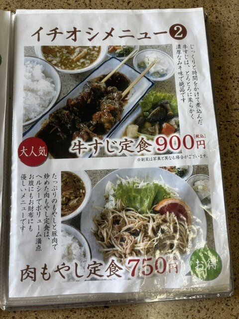 チキン南蛮定食(950円)と牛スジ串1本(300円)を注文。