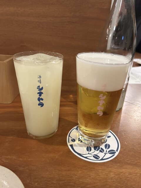 お決まりのビールとレモン水