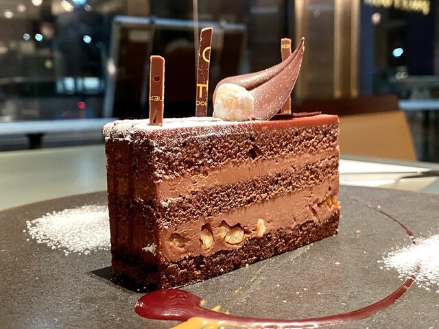 チョコレート生地になめらかなガナッシュクリームが重ねられ、ヘーゼルナッツがアクセント♪
