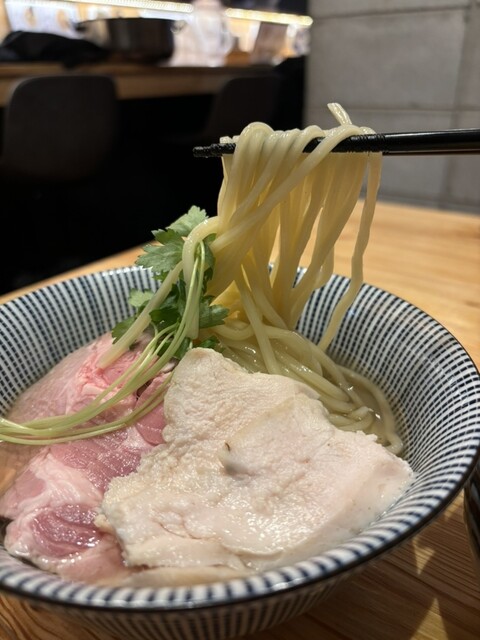 しゅきの麺はもちろん美味しいんやけど、この秋刀魚水に浸かった麺を塩白湯のつけだれにつけたらたまらん