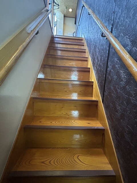 お店に入って左側に進み階段の下駄箱に靴を入れて2階に上がり‥