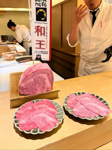 一番最初に今日調理してくれるお肉である熊本の黒毛和牛「和王」と彩鮮やかな季節の野菜と対面~!
