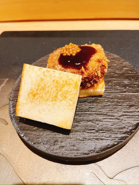 とろける甘みの脂に、すりおろし野菜のソースが絡む。